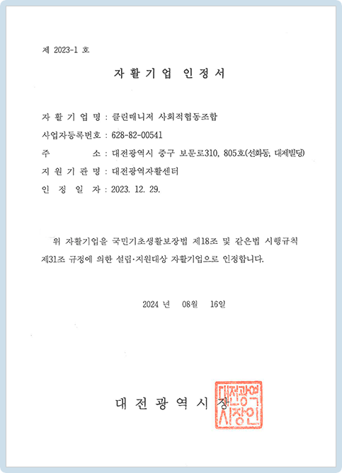 광역자치단체에서 인정한 자활기업으로,